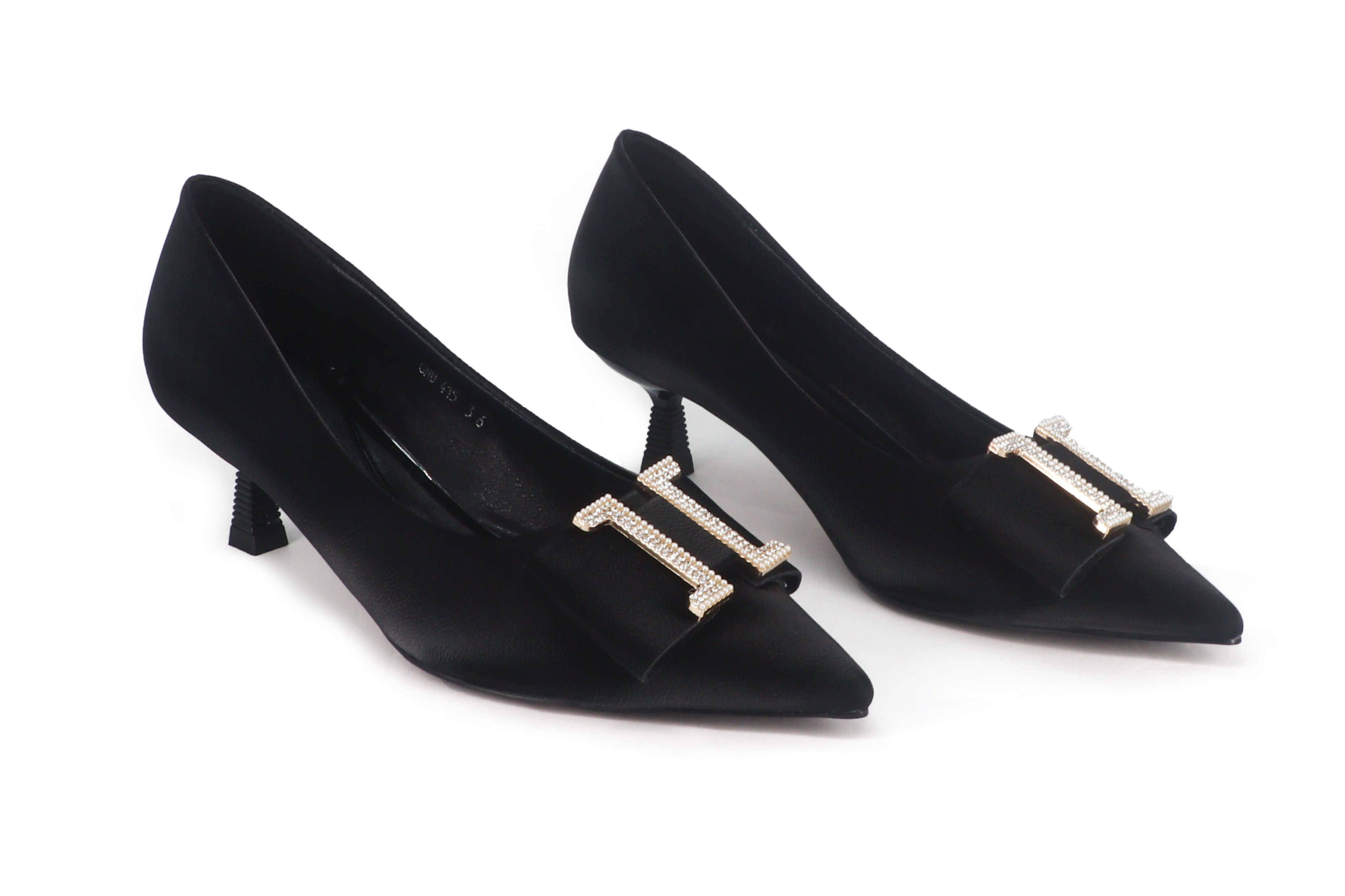 Giày cao gót mũi nhọn nơ chữ H tròn thời trang cao cấp 3p chính hãng VOLSCI - GNU415