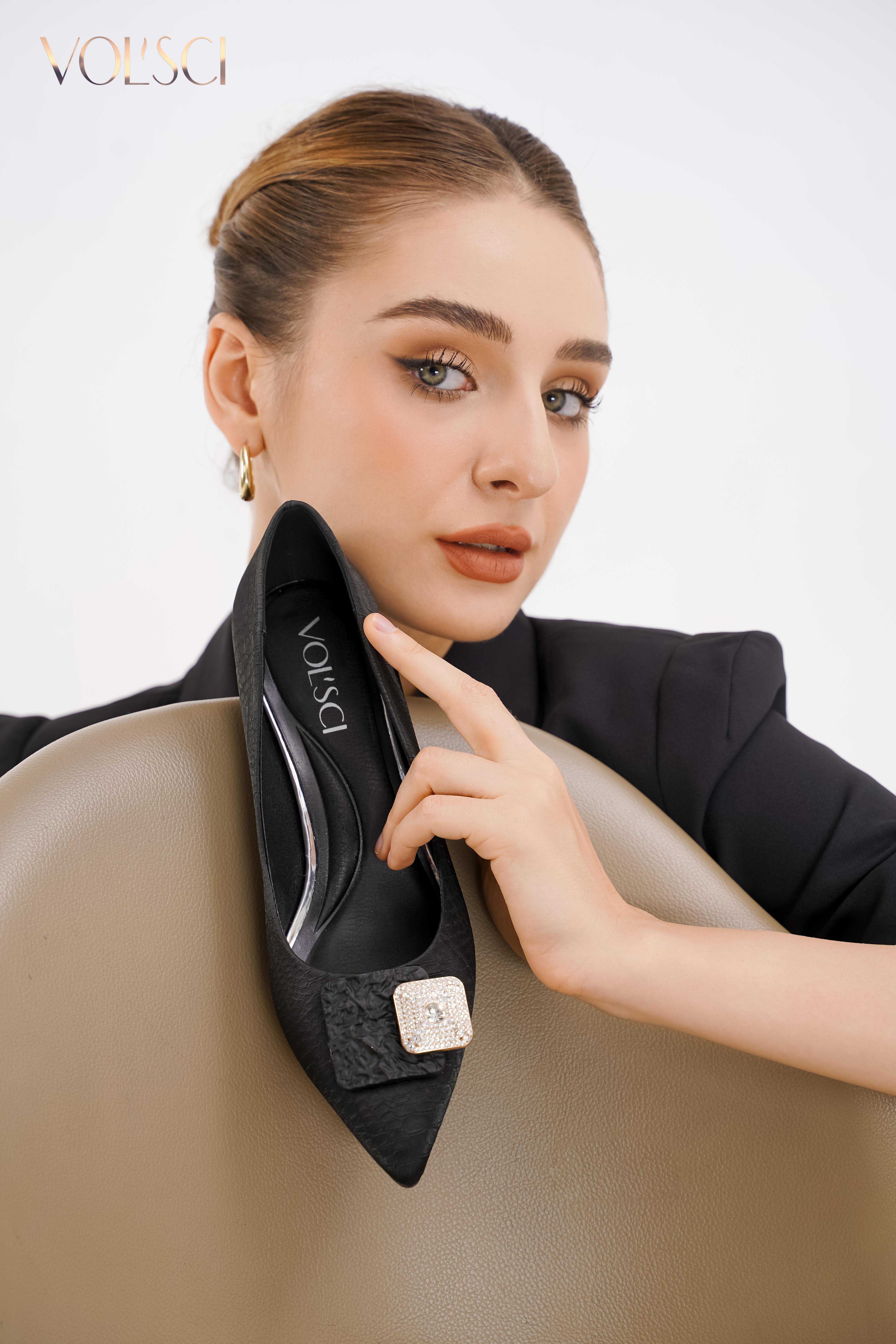 - Giày cao gót VOLSCI được thiết kế tỉ mĩ với form dáng chuẩn đối với người Việt, giúp bảo vệ nâng niu bàn bạn chân của nàng, giữ form tốt, đặc biệt lớp mút lót bên trong giúp bạn không bị đau chân hay trầy gót chân.